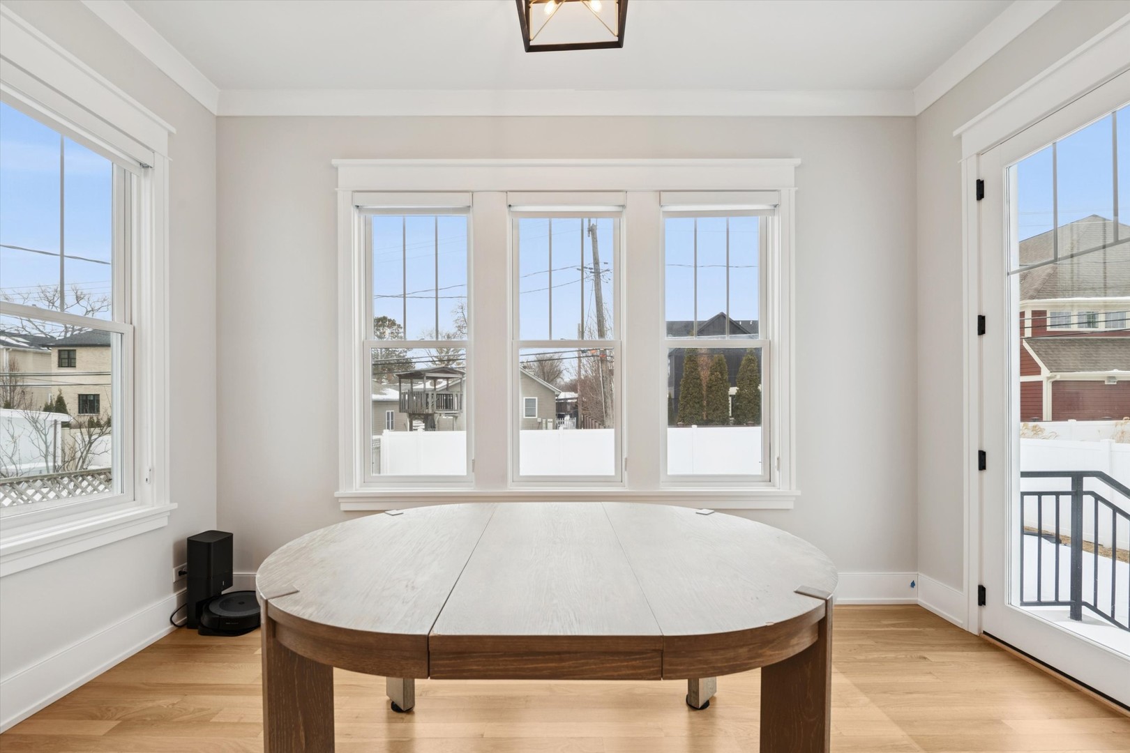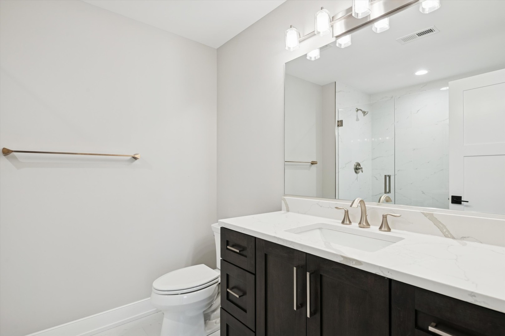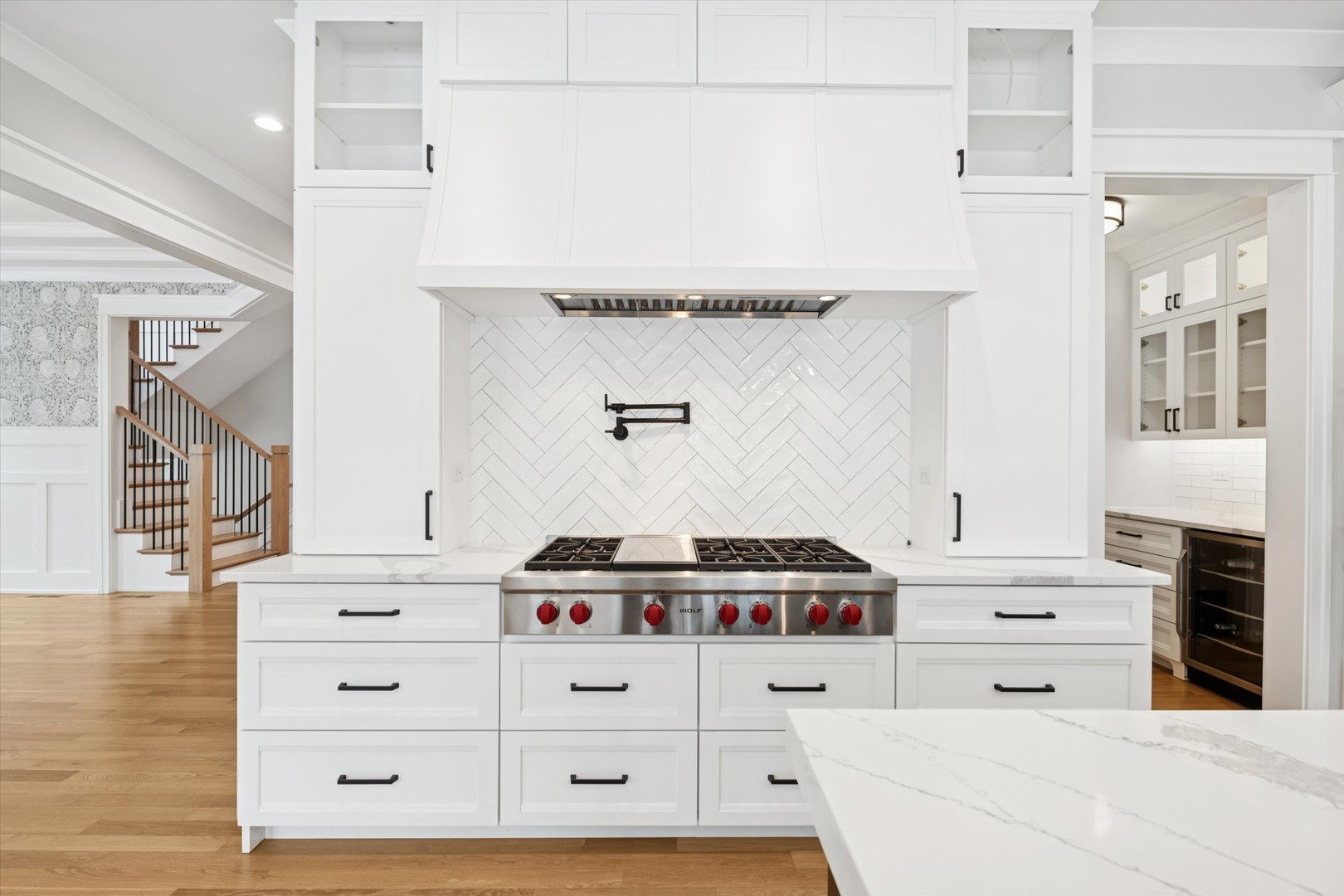 From the moment you arrive, this custom-built residence makes its intention clear-crafted with care, designed with purpose, and finished with a level of detail that feels both timeless and quietly luxurious. Built in 2022 and offering approximately 4,535 square feet, this five-bedroom, four-and-a-half-bath home unfolds across three finished levels, balancing architectural presence with everyday ease. The front door opens to a light-filled foyer where clean lines, tailored millwork, and warm hardwood floors set the tone. A striking staircase with oak treads and black iron balusters rises as a focal point, anchoring the home with a sense of scale and craftsmanship. Ten-foot ceilings on the main level lend an airy, expansive feel, allowing each space to breathe while remaining thoughtfully connected. The heart of the home reveals itself effortlessly. The kitchen is both refined and functional-quartz countertops, a generous island, Sub-Zero refrigeration, Wolf range with double ovens, and a walk-in pantry create a space equally suited for quiet mornings or lively gatherings. A sunlit breakfast nook invites lingering moments, while the kitchen flows naturally into the family room, where exposed wood beams frame the ceiling and a stone-clad gas fireplace with custom built-ins creates a warm, welcoming backdrop. Just beyond, the formal dining room feels elevated yet intimate, defined by coffered ceilings, detailed wainscoting, and curated finishes that make hosting feel effortless and special. A private first-floor office offers flexibility for work or retreat, tucked away yet perfectly positioned. The mudroom-complete with built-in lockers-connects the rhythm of daily life to the oversized garage with ease and intention. Upstairs, the primary suite is a true sanctuary. Generous in scale, it features dual walk-in closets and a spa-inspired bath with a soaking tub and separate shower-designed for restoration at the end of the day. Secondary bedrooms are equally well considered, with Jack-and-Jill baths serving two rooms and an additional bedroom offering its own en-suite bath and walk-in closet. The finished lower level extends the living experience, offering nine-foot ceilings, a spacious recreation room with an additional gas fireplace, an exercise area, a full bath, and a fifth bedroom-ideal for guests, extended stays, or flexible living. Outside, a beautifully designed paver patio invites outdoor dining and relaxation, while modern conveniences such as a whole-house generator add peace of mind. The location completes the picture, with nearby parks, trails, schools, and transportation enhancing daily life without effort. Thoughtfully designed and impeccably executed, this home is not simply a place to live-it's a place to settle in, to host, to unwind, and to grow into over time. A residence where quality is felt in every detail and where modern living is elevated by timeless design.